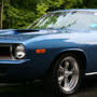 Mopar Muscle - 1973 “360 Cuda” Plymouth Barracuda, 360-495 hp crate motor, automatic. Blue paint with white interior. Rotisserie restored with new paint, interior, chrome, all new or remanufactured driveline, running gear, wheels and tires.