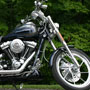 Up front the custom components are a veritable sea of chrome. Slickly integrated into the 1.25-inch diameter handlebar is a spun-aluminum metal-faced tachometer. While some of the other machines require riders to remove their eyes from the road to see where the needle is bouncing, this Dyna offers the rider a glimpse of the tach with a flick of the eyes. The chrome-laden hardware looks gorgeous and offers the pilot a little eye candy to smile about while on the road.