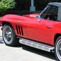 Corvette Roadster, 427-425 hp 4 speed. Rally Red paint with Black interior and Black soft top. Beautiful color combination. Body-off restored with newer paint, interior, top, chrome, stainless, brakes, exhaust, and tires. Optioned with factory side exhaust, power antenna, transistorized ignition, 3.08 M-21, posi, AM/FM radio, back-up lights, knock off aluminum wheels, and 7.75x15" white stripe tires. Most all factory correct type components including the spare, jack, jack tools, K.O. wheel hammer, seat belts, washer system, shifter, shielding, braided wires, air cleaner, and T-3 headlights. Well documented with restoration photos. Looks, runs, and drives excellent.